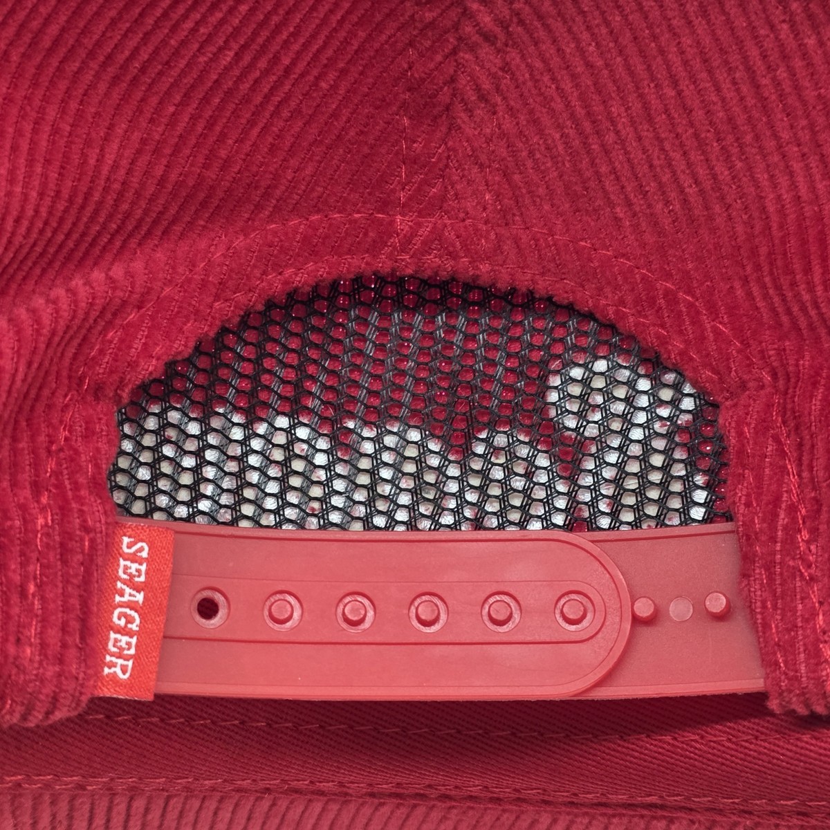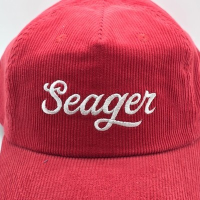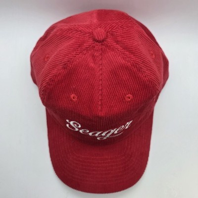 Seager Grit Company Hat Cap Snap Back Red Corduroy Script Logo Men's Casual