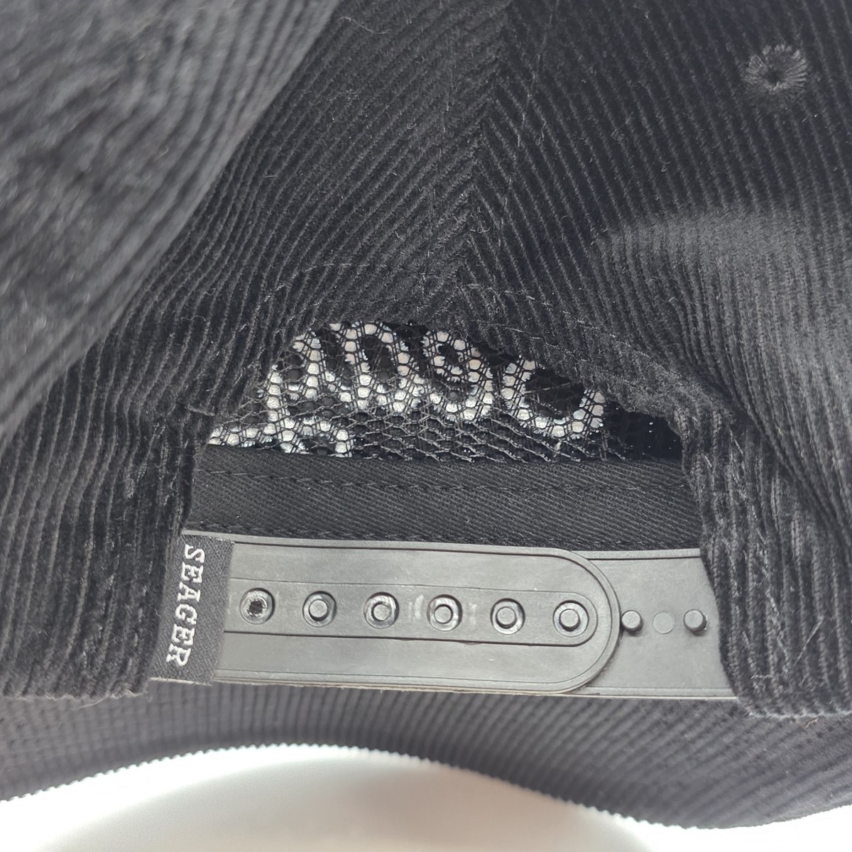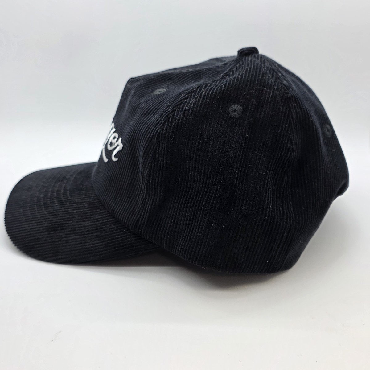 Seager Grit Company Hat Cap Snap Back Black Corduroy White Script Logo Men's