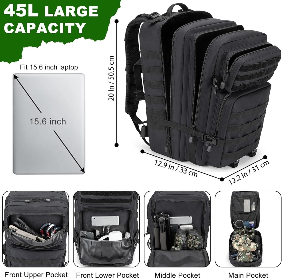 Durable 45L Tactical Rucksack - Water-Resistant Design for Hiking & Camping
