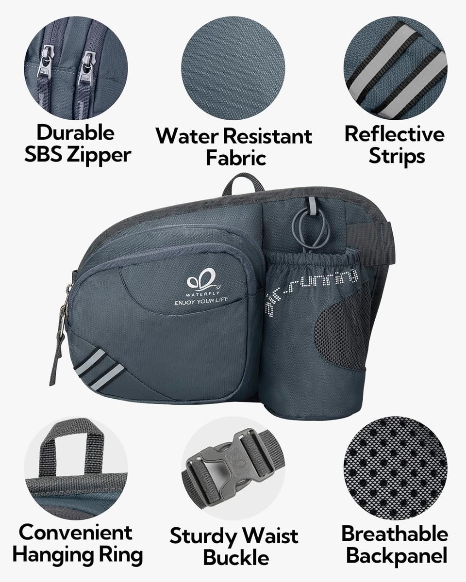 Features: Adjustable Waist Belt,Water Bottle Holder,Rainproof,Ample Storage,Breathable Padding
