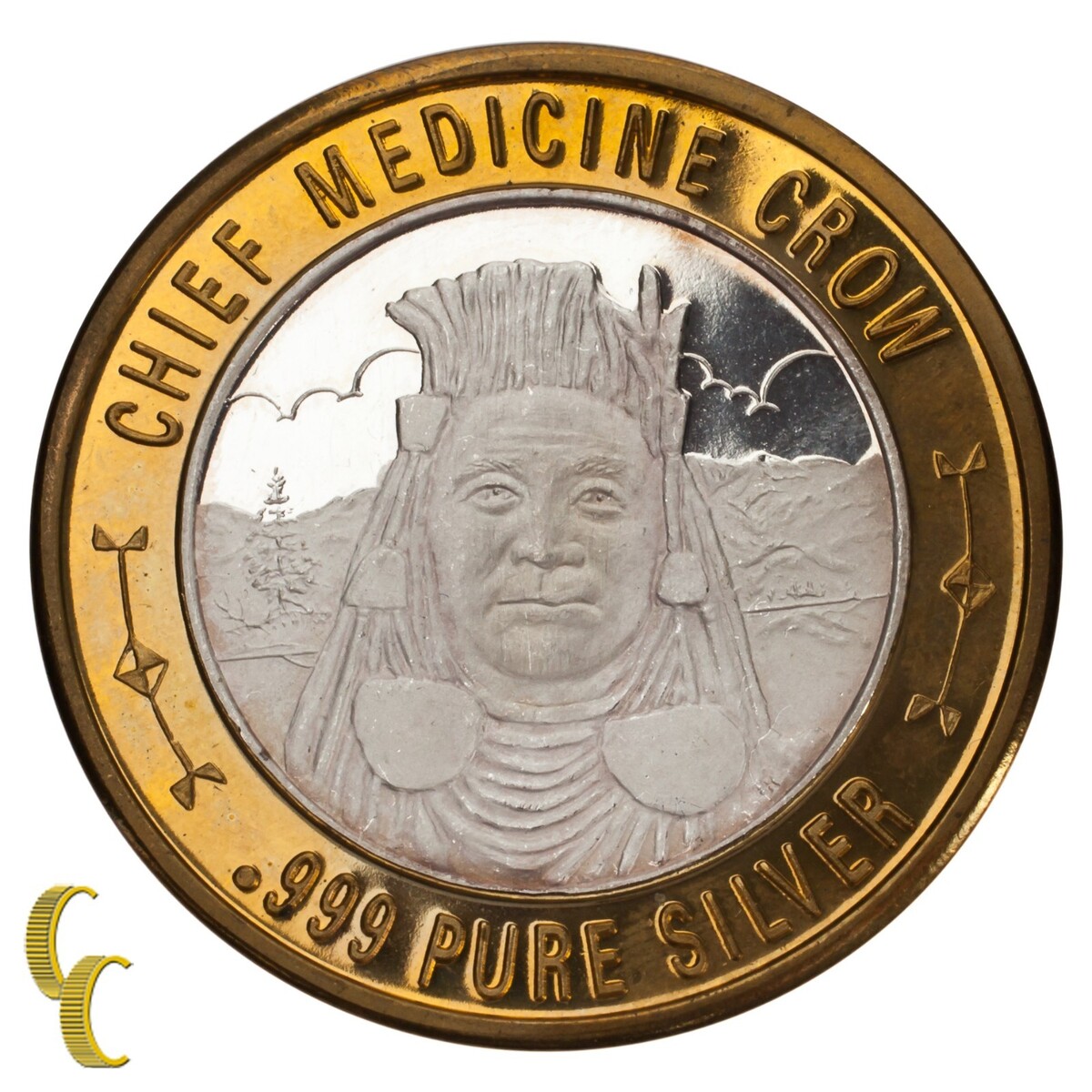 Jefe Medicina Crow Nativo Americano Casino Gaming Token .999 Plateado Ed.