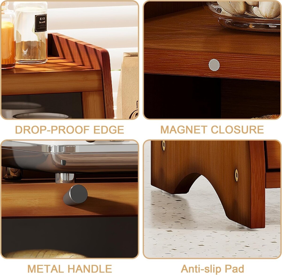 Vintage Pantry Revolution: Beyond merely storing bread, this versatile countertop bread box can organize fruits, snacks, or baking supplies in designated tiers, transforming cluttered kitchens into curated spaces of elegance.