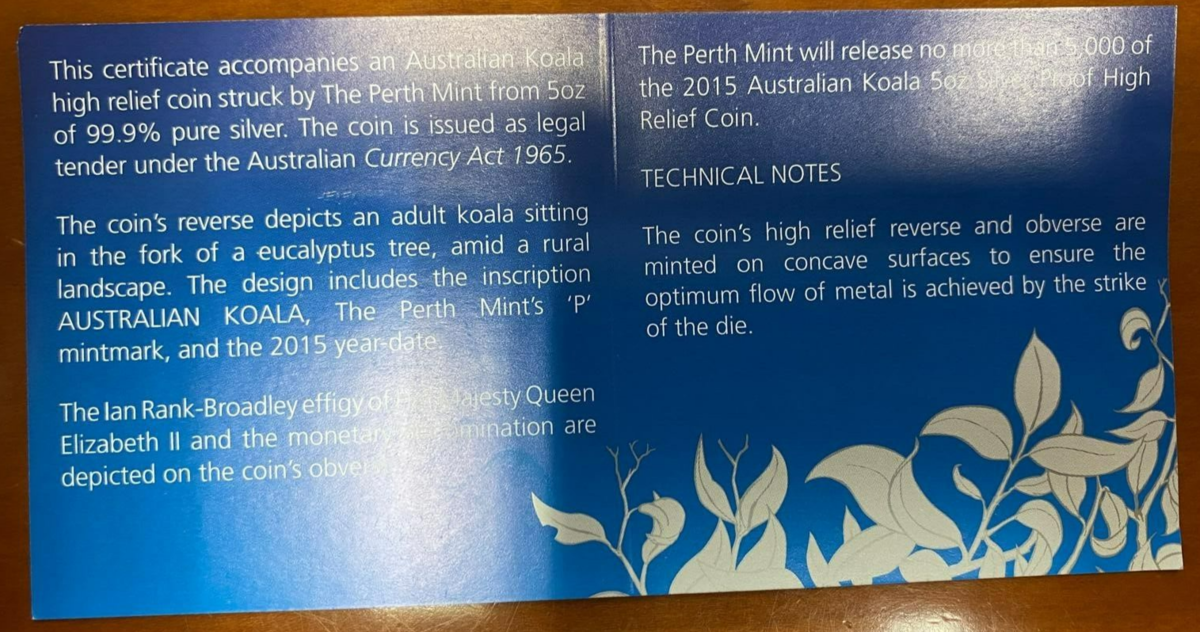 2015-P Australia 5 Oz. S$8 Silver Koala High and similar items