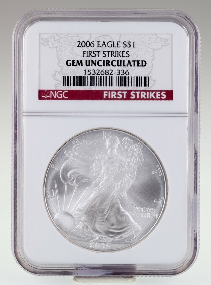 2006 $1 Silver American Eagle Graded by NGC as Gem Uncirculated First Strikes