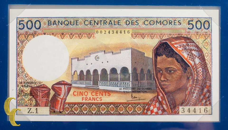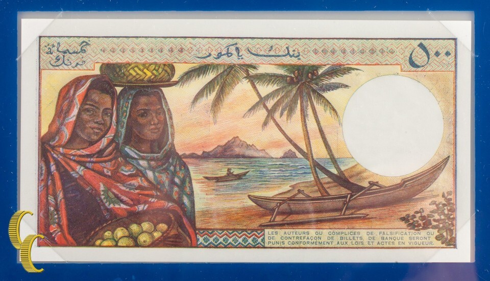 1976 Banknotes of All Nations Banque Centrale Des Comores 500 Francs (UNC)