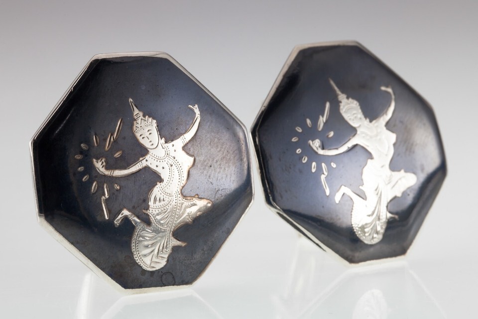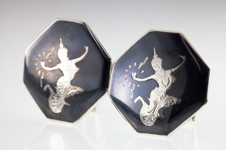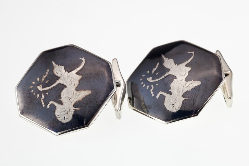 Gorgeous Sterling Silver Niello Men's Octagonal Cufflink Pair 18.7grams