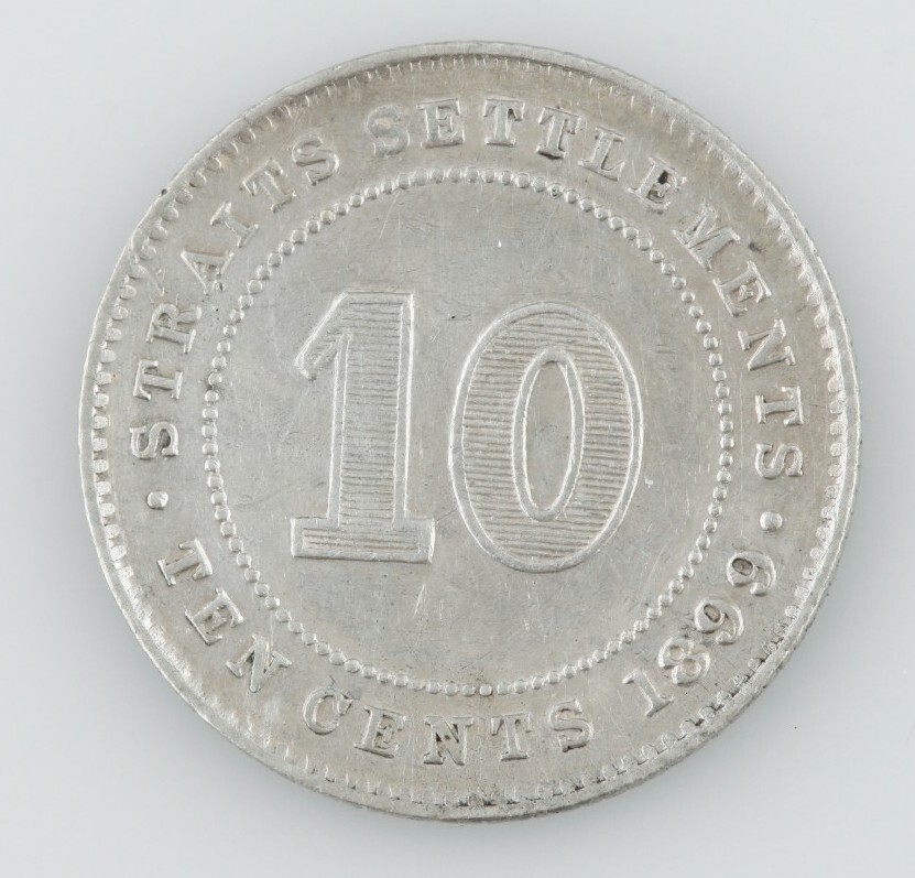 1899 Straits Settlements 10 Cents Silver Coin in Extra Fine Condition KM#11