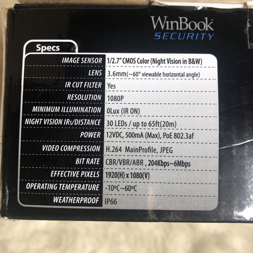 WinBook Outdoor/Indoor Night Vision 1/2.7" CMOS Security Camera 1080p IP POE