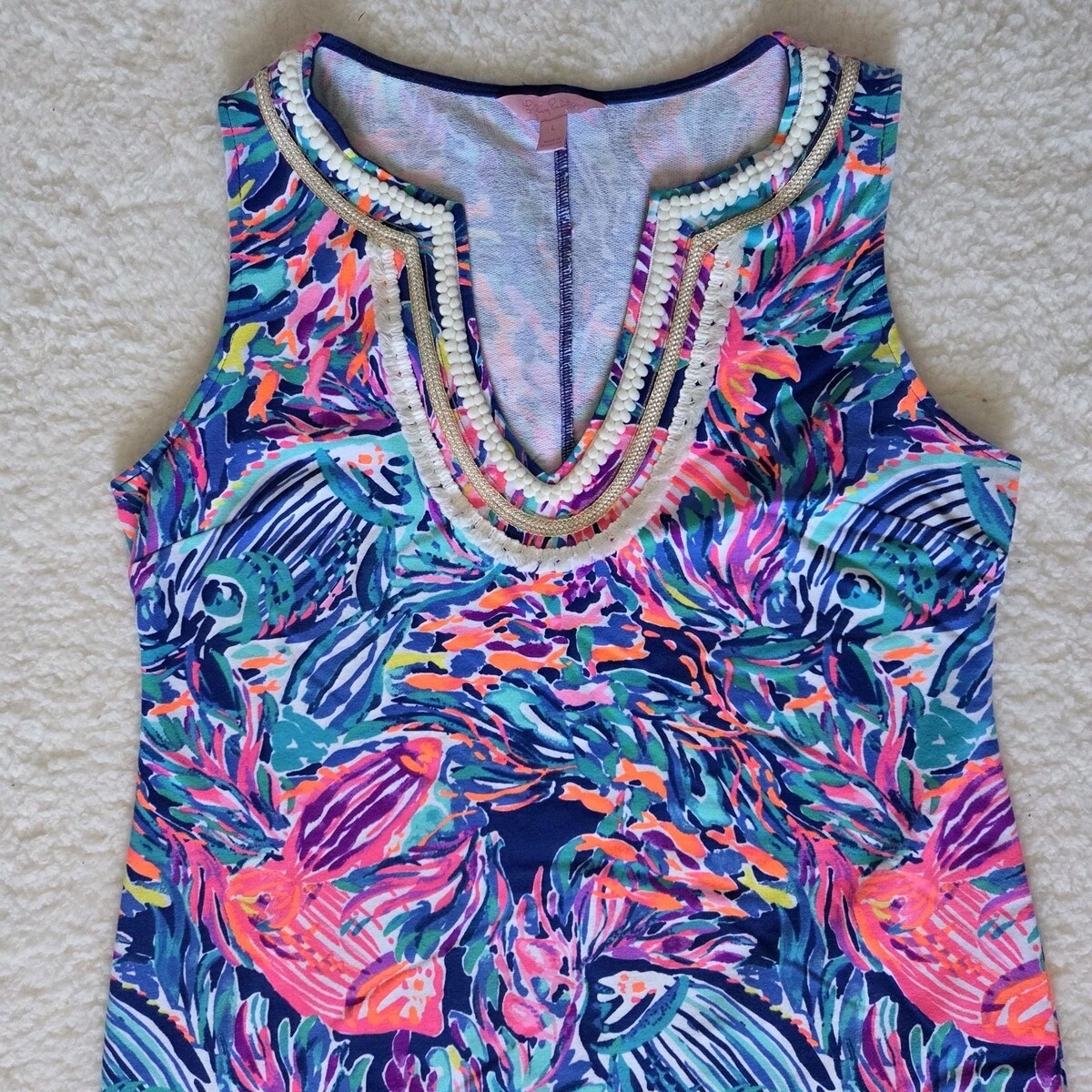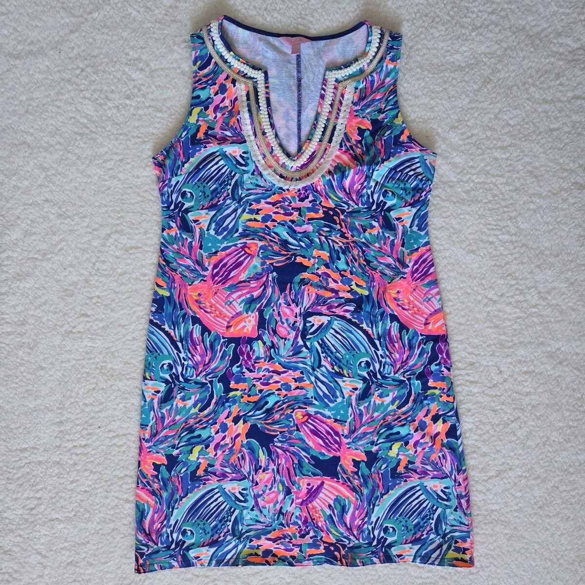 Lilly Pulitzer Harper Shift Dress Sleeveless Bright Fish Resort Summer Size L