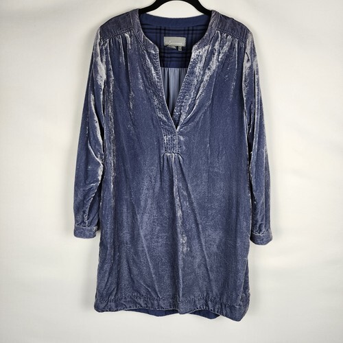 ANTHROPOLOGIE Women's Gray Blue Crushed Velvet Oversize Dress XS