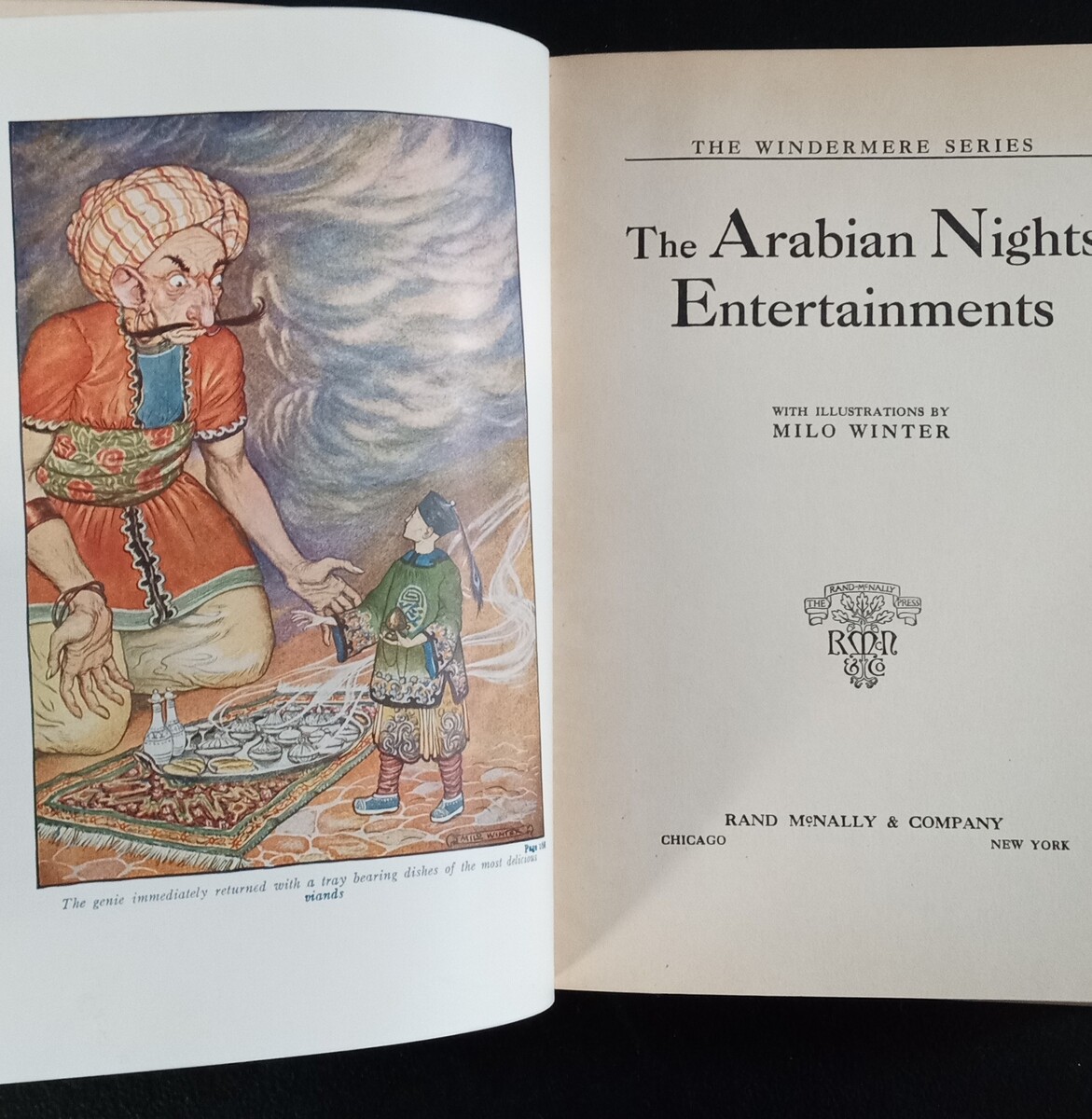 1935 The Arabian Nights Illustrated by Milo Winter Published by Rand. This is a wonderful edition of those classic Arabian tales, complete with breath taking illustrations by talented illustrator Millo Winter.