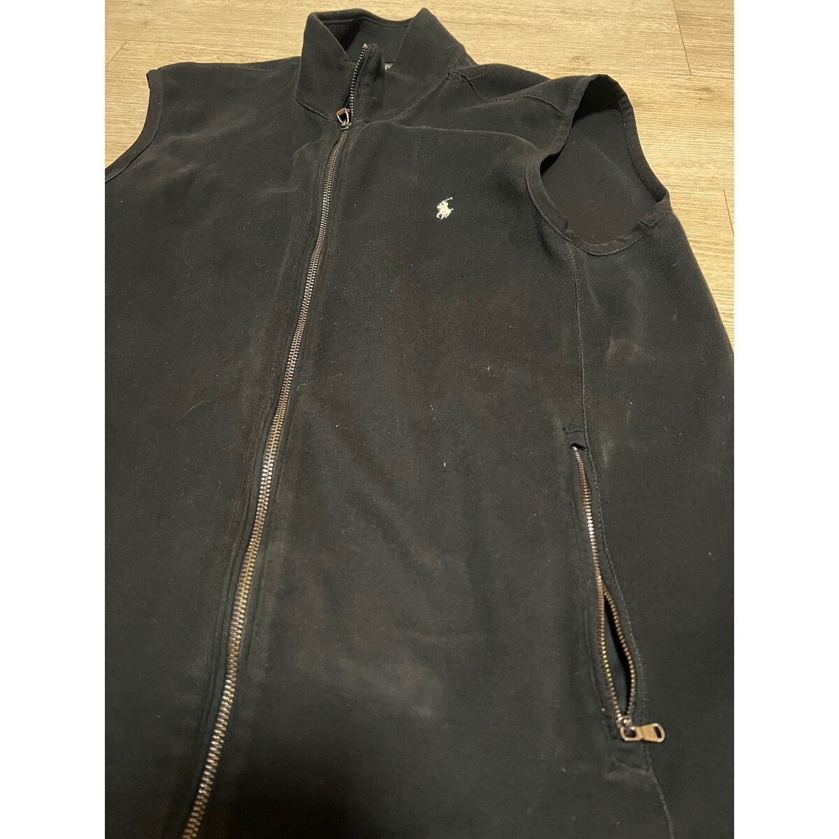 Polo Ralph Lauren Mens Black Full Zip Cotton Knit Sweater Vest Full Zip Size M