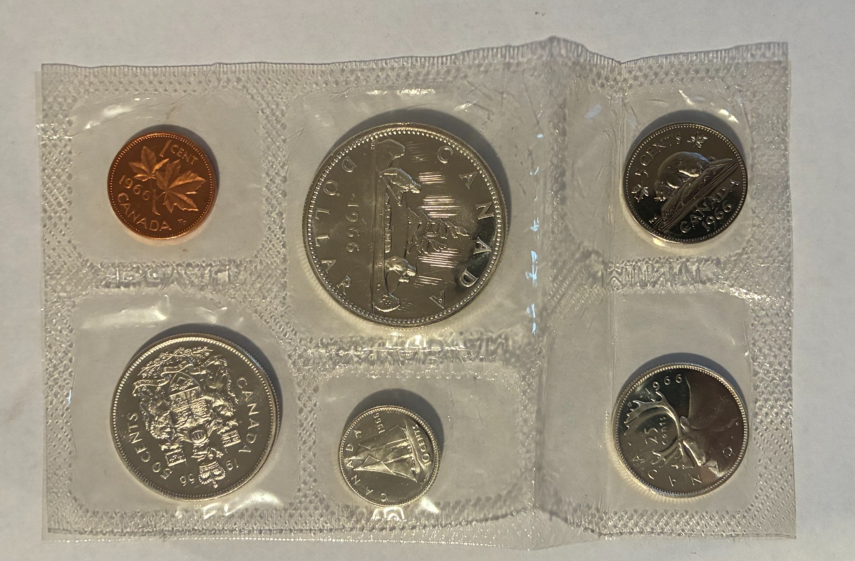 1966 Royal Canadian Mint Canada 6-Coin Silver Prooflike Set in Original Cello