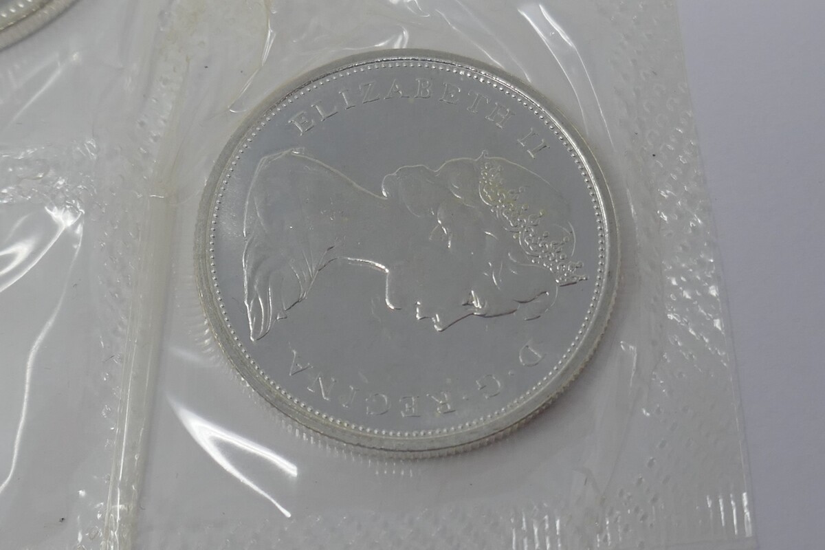 This six-coin Prooflike set includes the following Canadian coins: 1 cent, 5 cents, 10 cents, 25 cents, 50 cents and 1 dollar minted by the Royal Canadian Mint. The coins 10 cents - $1 coins are are made of 0.8 fineness silver. These come in their original cello packaging. Perfect for any coin enthusiast or collector looking to add a piece of Canadian history to their collection.
