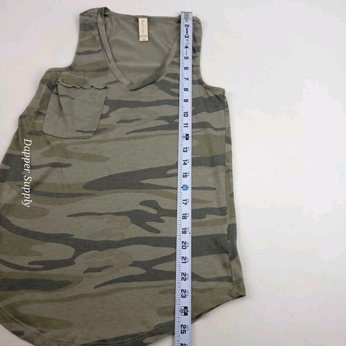 Alter'd State Womens Top xSmall Green Camo V-Neck Pocket Tank Curved Hem