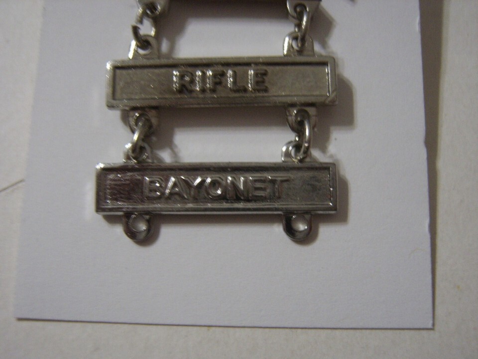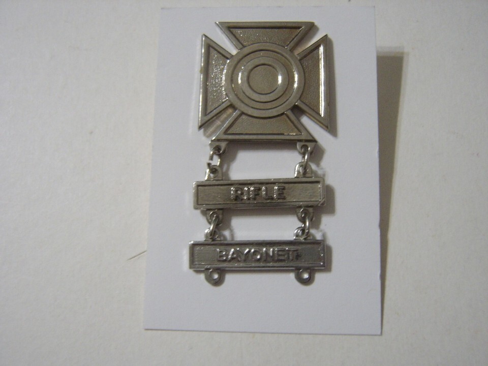 ARMY SHARPSHOOTER QUALIFICATION BADGE RIFE & BAYONET BARS BRIGHT FINISH NEW