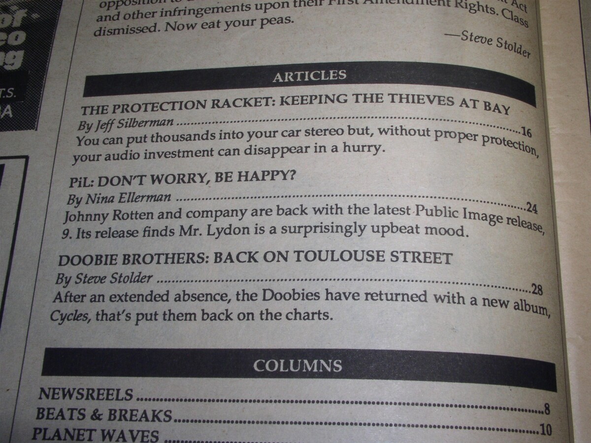 The Doobie Brothers BAM Magazine 1989 PiL Public Image Ltd Car Stereo Theft