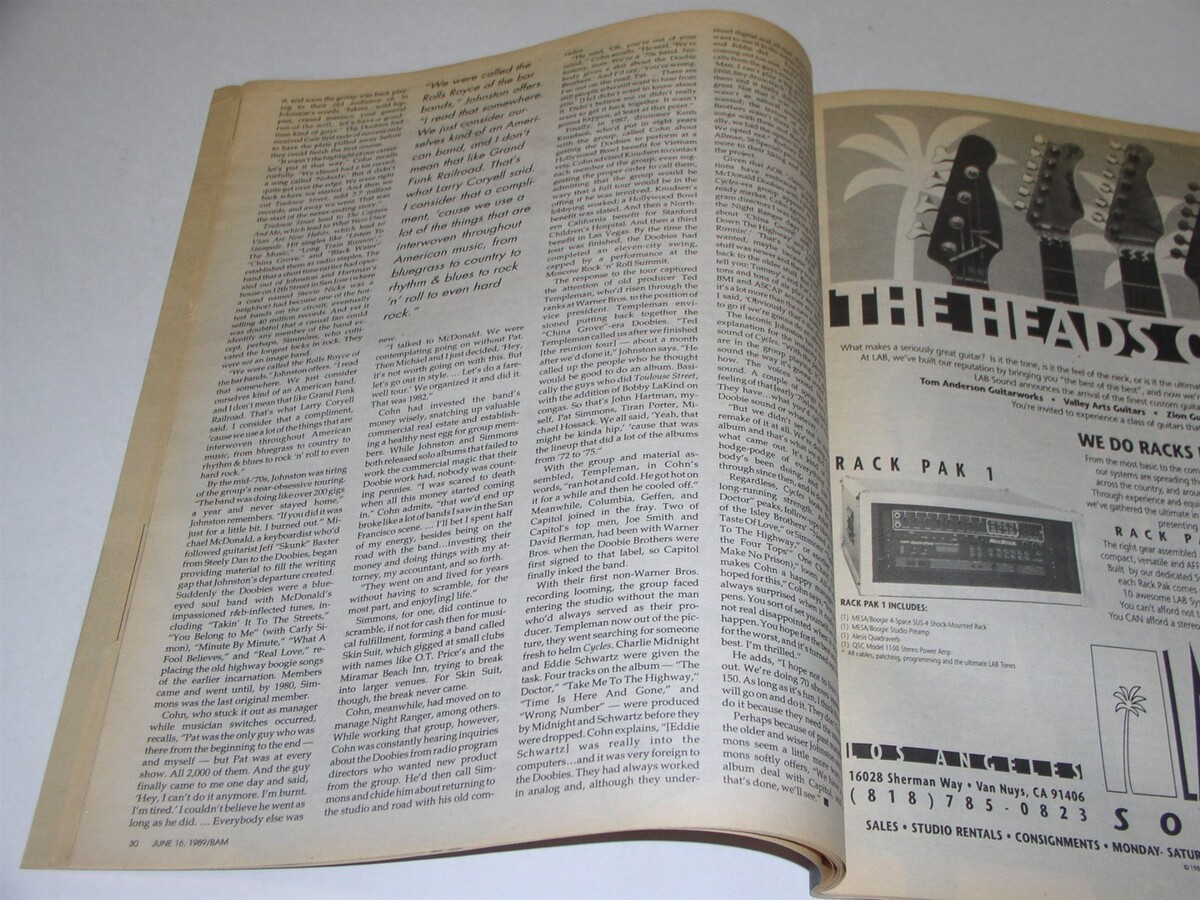 This is the June 16, 1989 issue of "BAM" magazine. Cover story on The Doobie Brothers. Inside: PiL Public Image Ltd., car stereo theft protection. A terrific item for the fan or collector.
