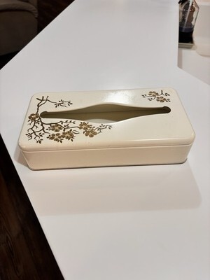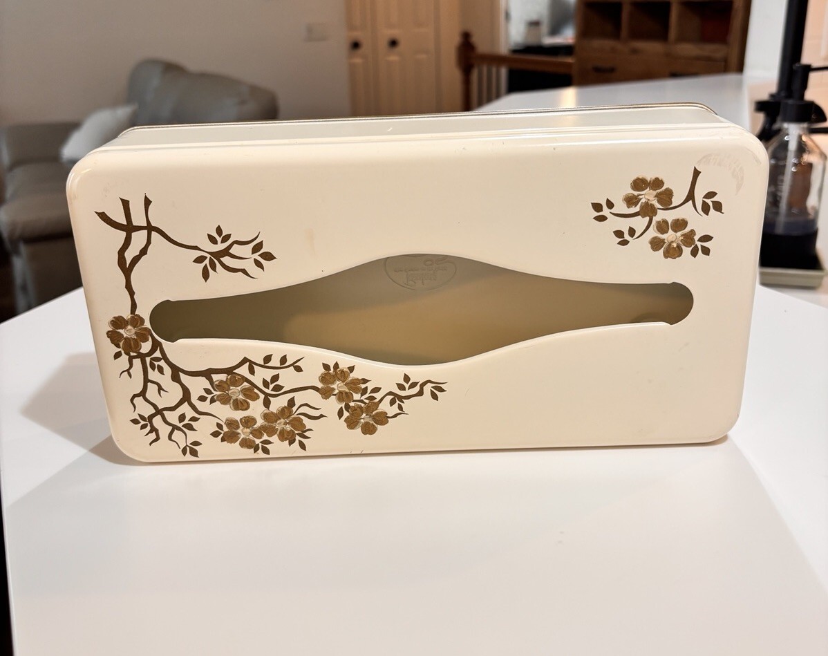 Vintage 70s Ransburg Metal Gold Floral Tissue Kleenex Box Dispenser Wall Mount
