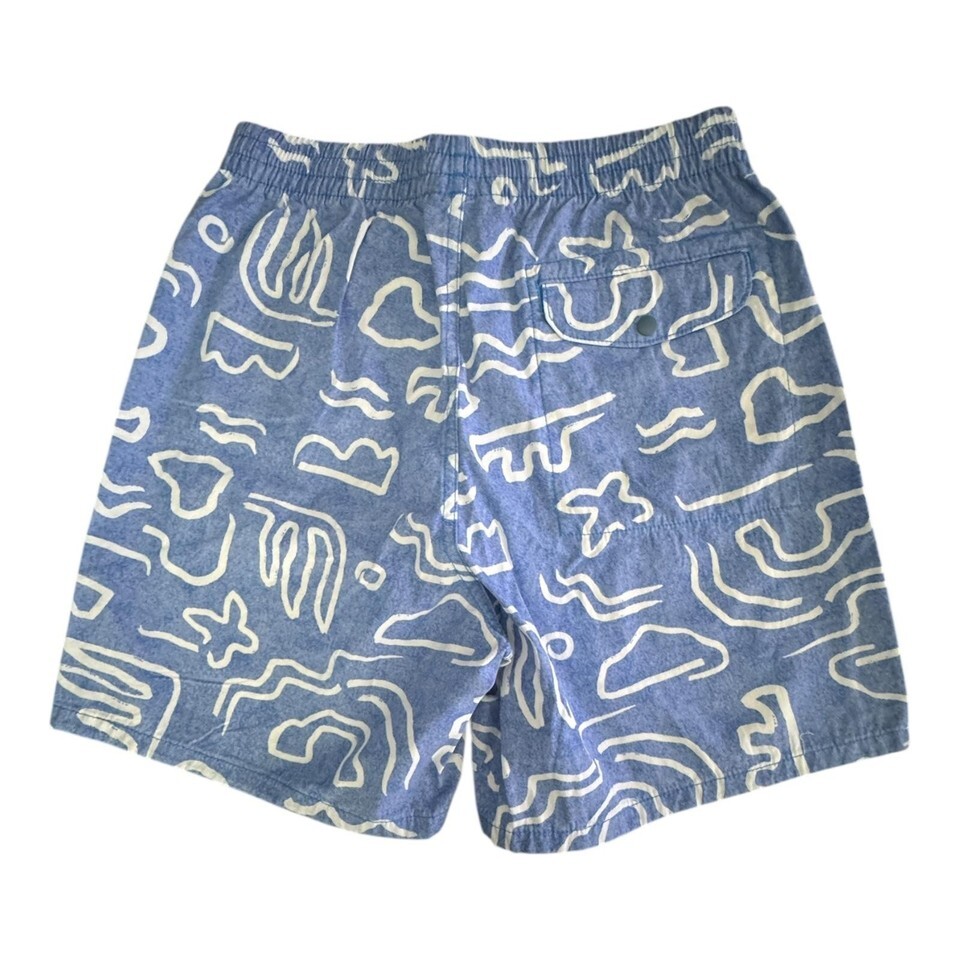 Patagonia Funhoggers Shorts 6" Mens Small Vessel Blue Cotton Pattern Summer