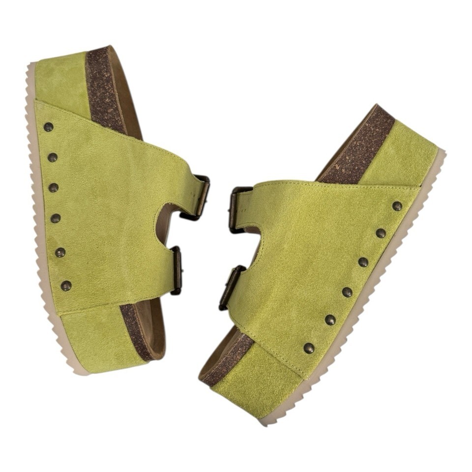 FP X Intentionally Blank Cooper 2 Platform Sandals Suede Pistachio Size 38/7.5-8