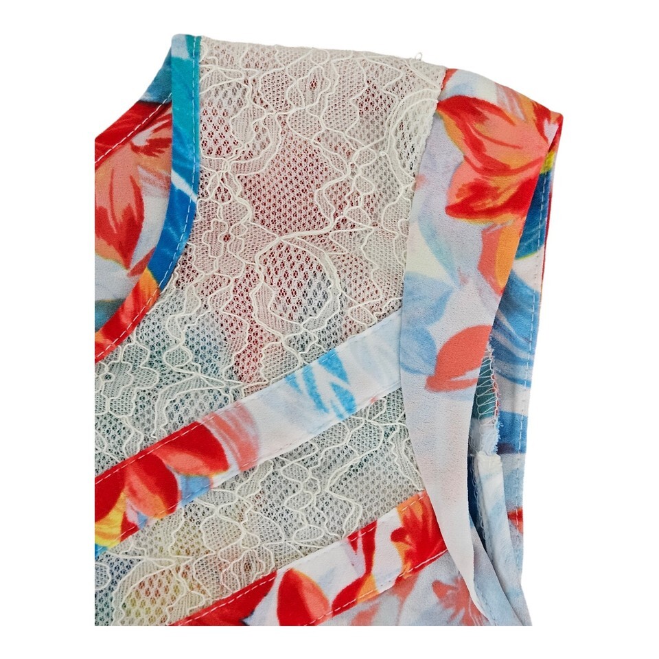 Floral Lace Inset Sleeveless Top Women's Size XS Tropical Print By Candies