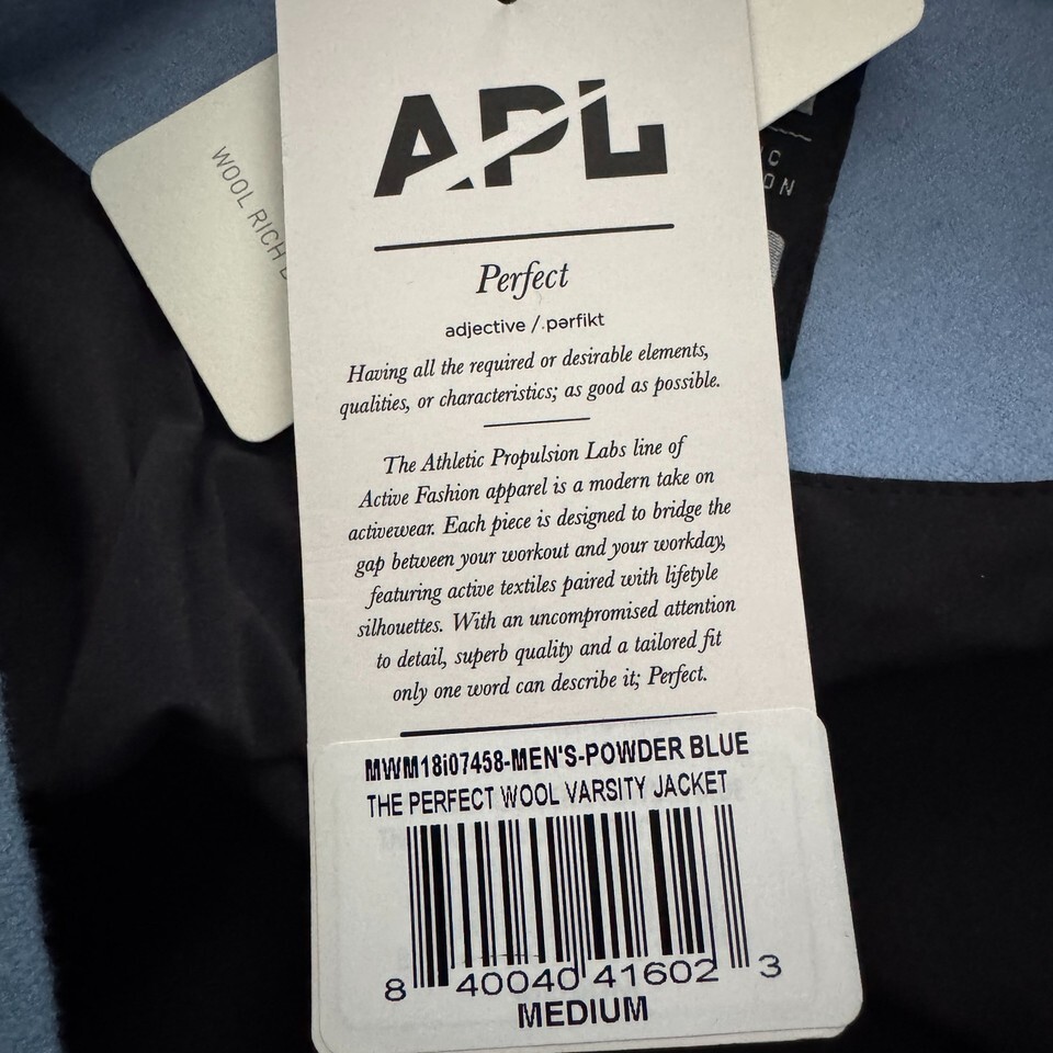APL x Woolmark Men's Powder Blue The Perfect Wool Varsity Jacket Small Med $500