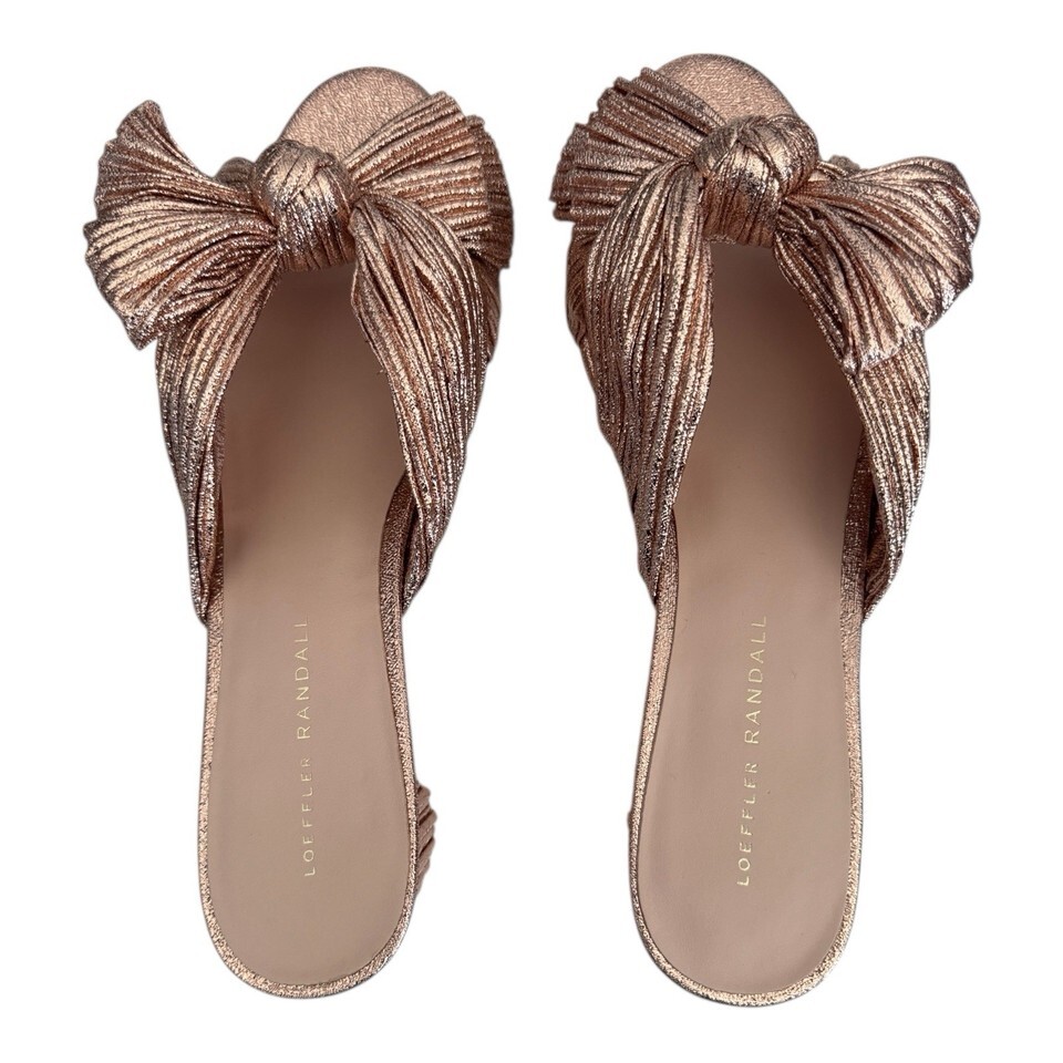 Loeffler Randall Emilia Pleated Sandals Dune (Metallic Rose) Top Bow 10B (9-9.5)