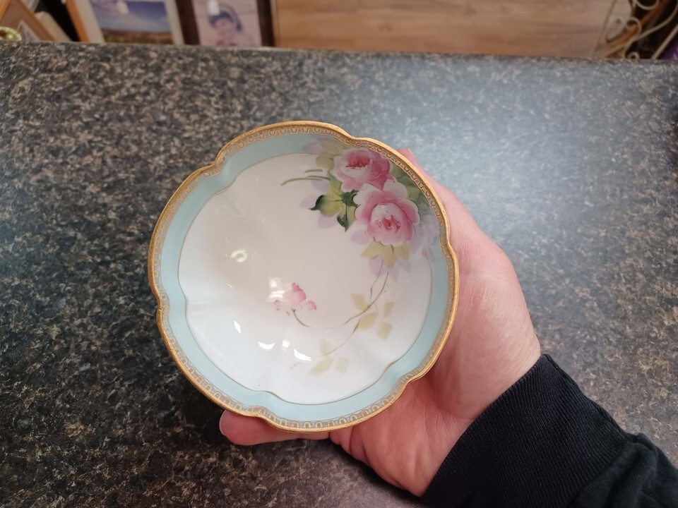 Antique Nippon Mayonnaise Bowl Nut Candy Dish Flowers 3 Footed