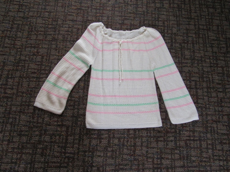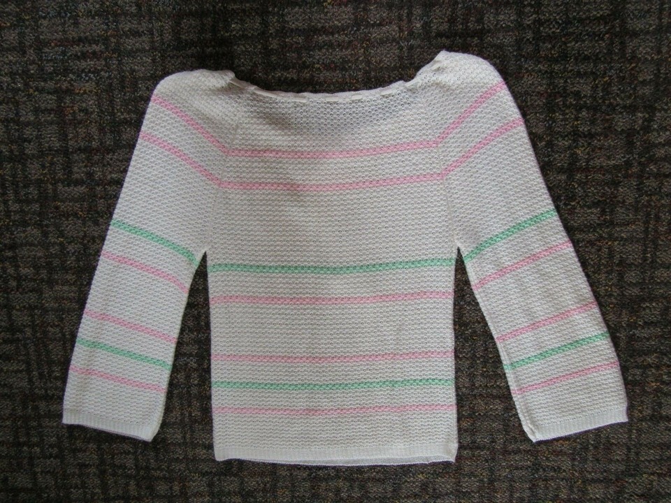 VTG Hand Knitted Crochet Ivory Pink Green Blouse Top Shirt Women's 70s 80s