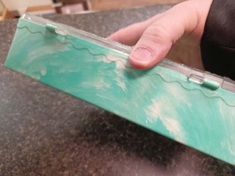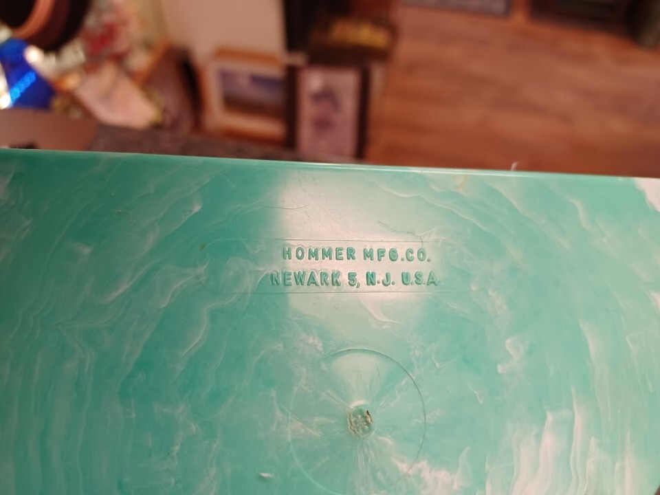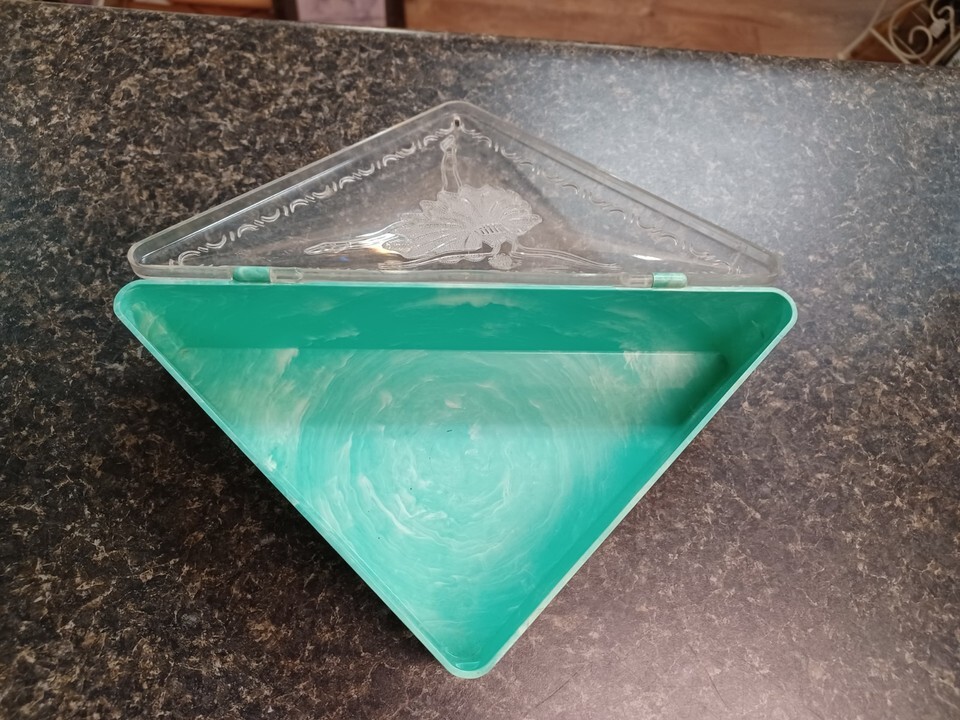 VTG Corner Triangle Hankie Handkerchief Box Green Swirl Marble Ballerina Hommer