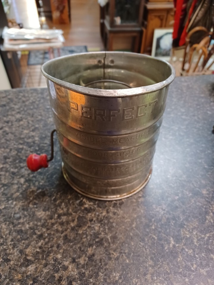 Vtg Perfect Flour Sifter 5 Cup Red Wood Crank Handle