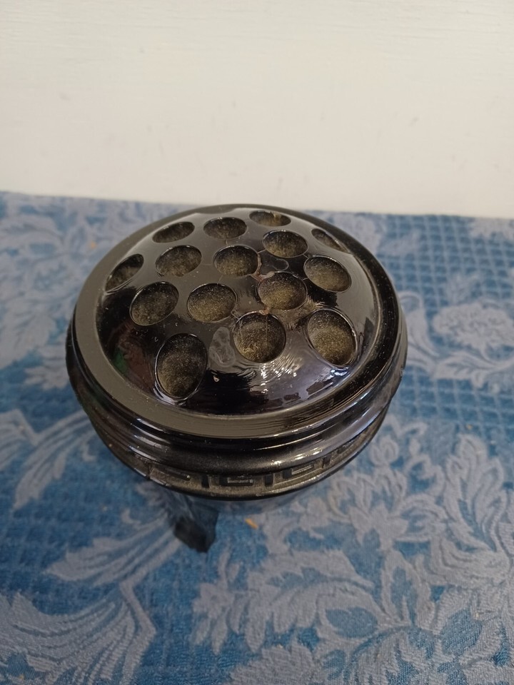 Black Amethyst Depression Glass Art Deco Greek Key Vase Flower Frog 2 Pieces