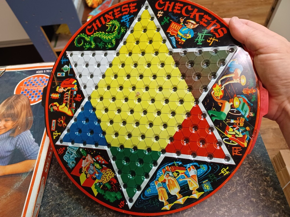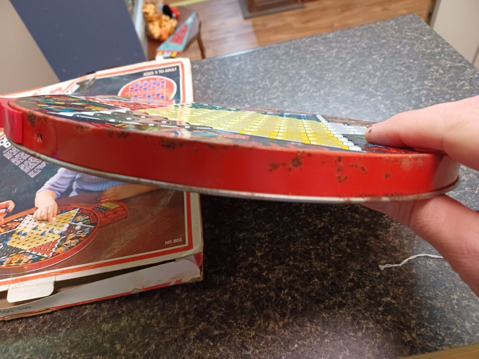Vintage 1977 Chinese Checkers Deluxe Tin Steven Pixie Game Incomplete