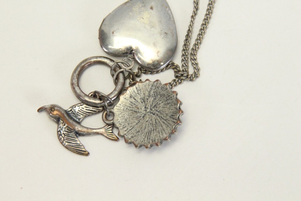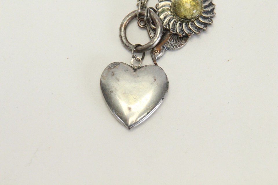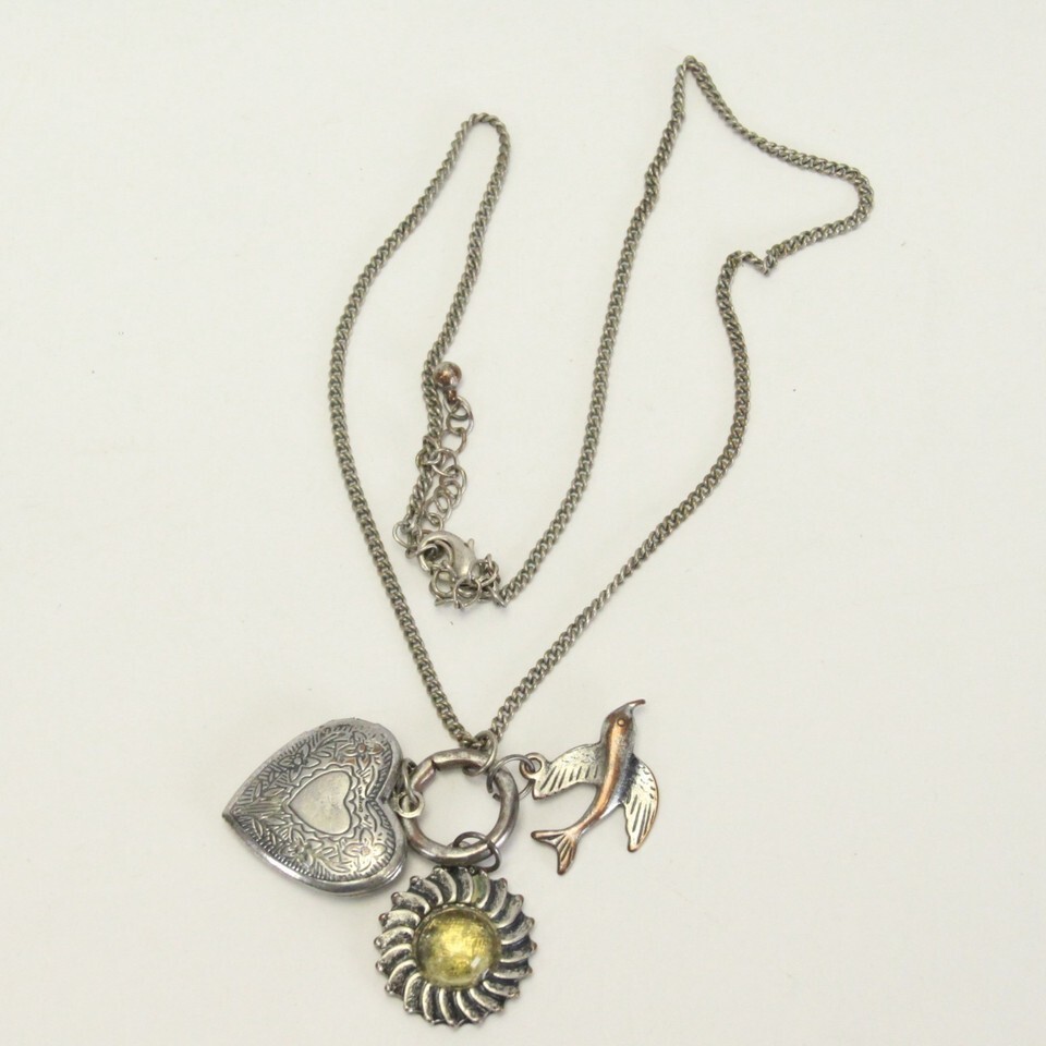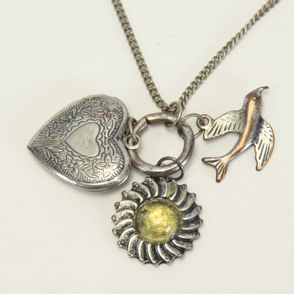 Necklace Heart Shaped Locket & Sunflower & Bird Charm 16" Chain
