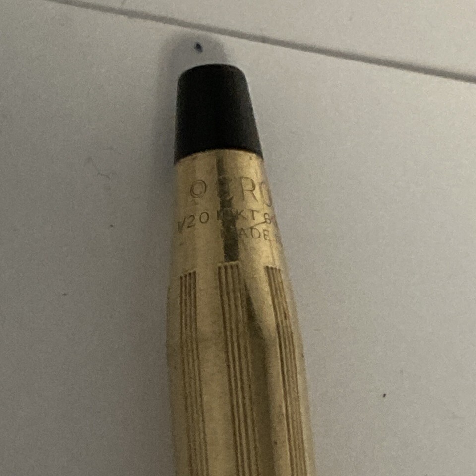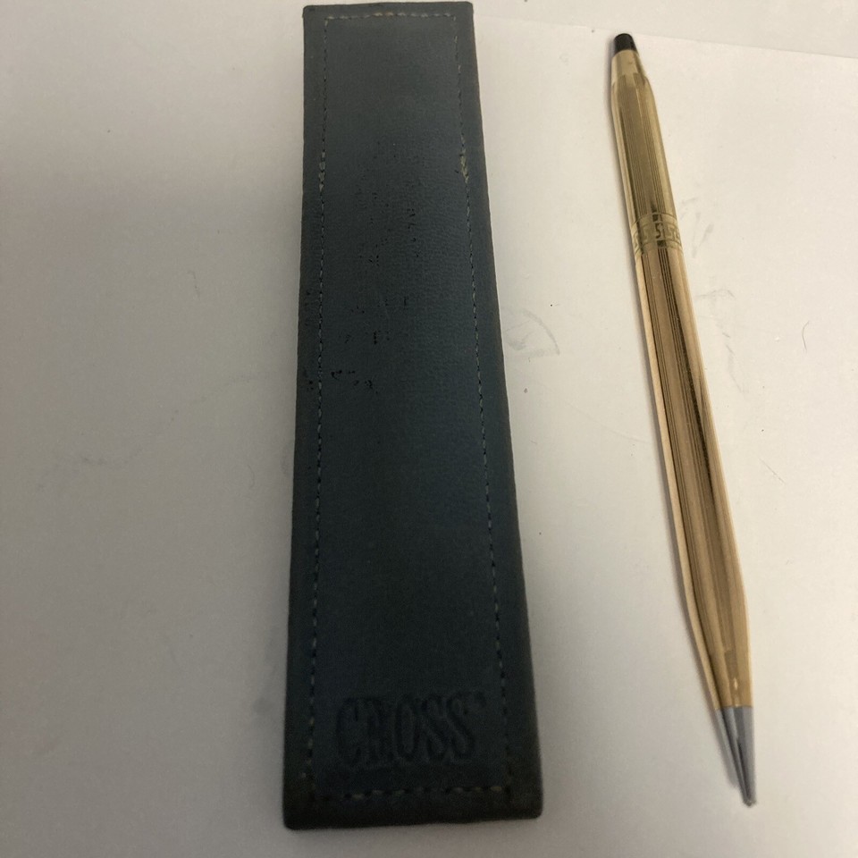 Cross Ladies 10K Gold Filled Mechanical Pencil With Grey Leather Pencil Holder