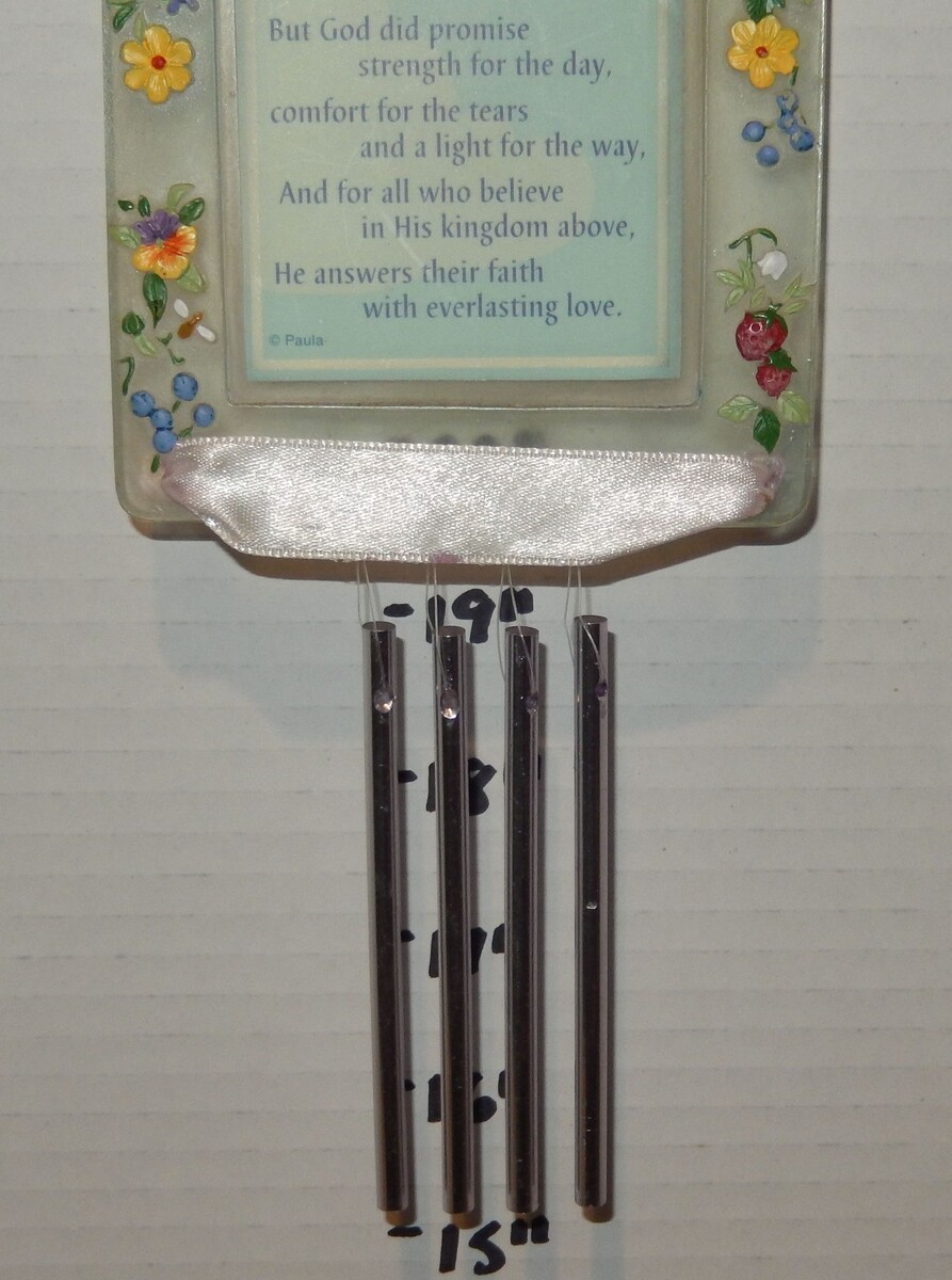 Wind Chimes: Includes four silver-toned metal chimes suspended below the plaque, providing a soft, pleasant tinkling sound.