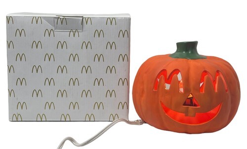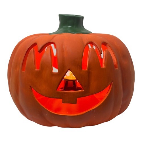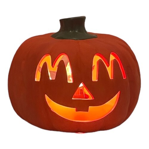 Vintage McDonalds Halloween Lighted Ceramic Pumpkin Double Sided Jack O Lantern