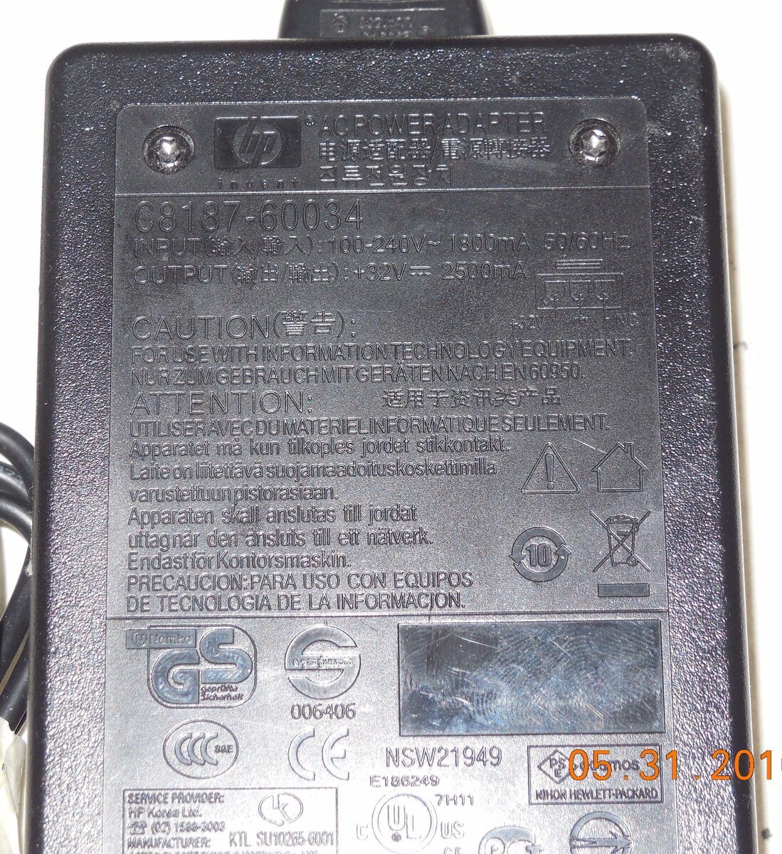 For Sale is a Used but in Very good Condition An HP Printer AC Power Supply adapter C8187-60034 32V 2500mA Replacement PhotoSmart OfficeJet Pro Genuine Original HP equipment.. Replacement For Lost or Broken Adapter. Fast same or next day shipping with delivery confirmation within the U.S.
