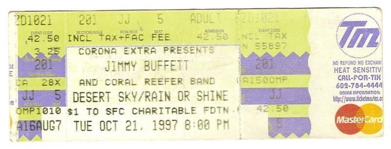 1997 JIMMY BUFFETT full Concert ticket 10/21/97