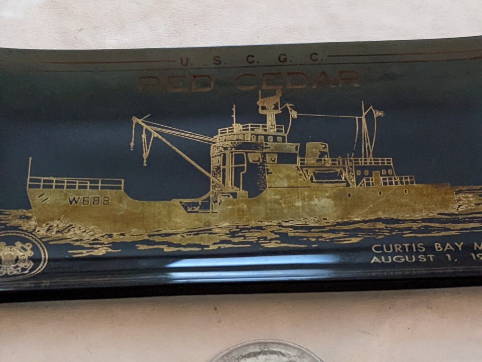 USCCG Coast Guard Red Cedar Curtis Bay Maryland 8/1/1970 Glass Ash Pin Tray- ...