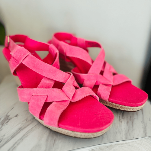 Cole Haan Crystal Wedge Leather Espadrille Strap Sandal, Pink, Size 9, NWOB