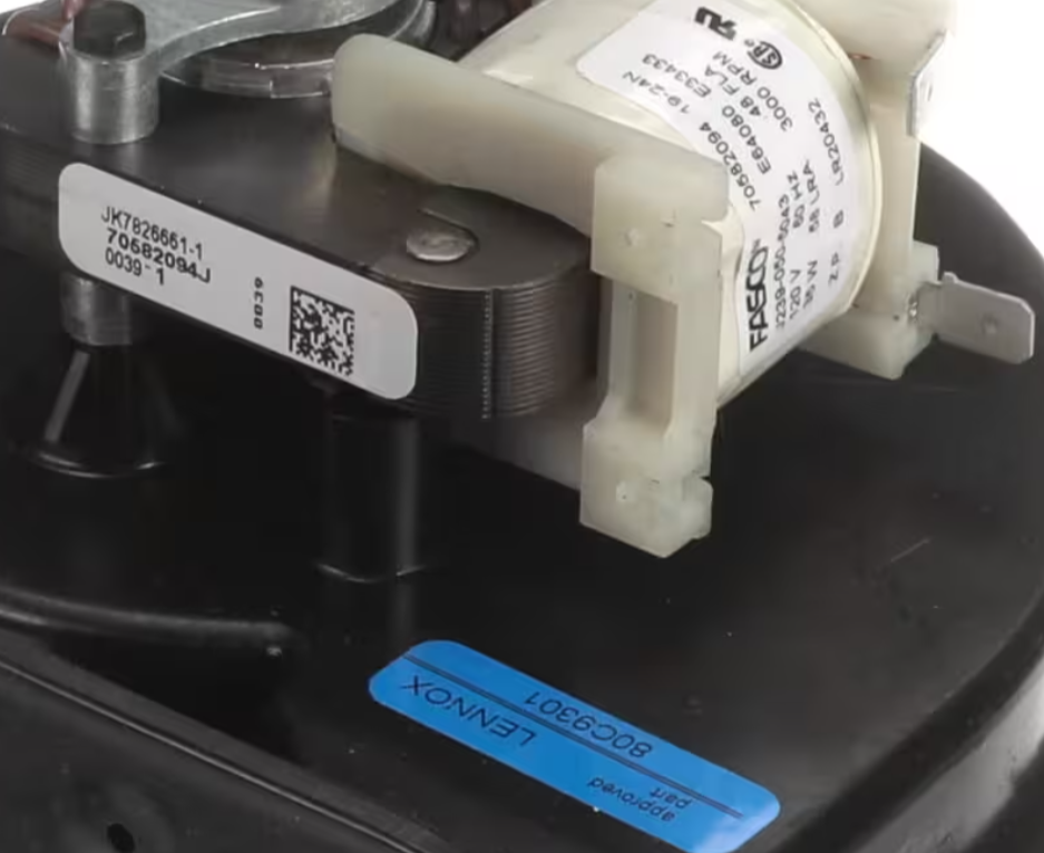Lennox JK7826661-1 / 70582094J / 80C9301 Blower / Motor Assembly Draft Inducer is a dependable OEM replacement inducer assembly designed for compatible HVAC equipment. This unit operates on 120V, 60HZ, and delivers 3000 RPM performance to help maintain proper draft and support reliable heating system operation. It is an ideal replacement for a worn, damaged, or failing draft inducer blower motor assembly, helping restore proper airflow and dependable system function in compatible Lennox units.
