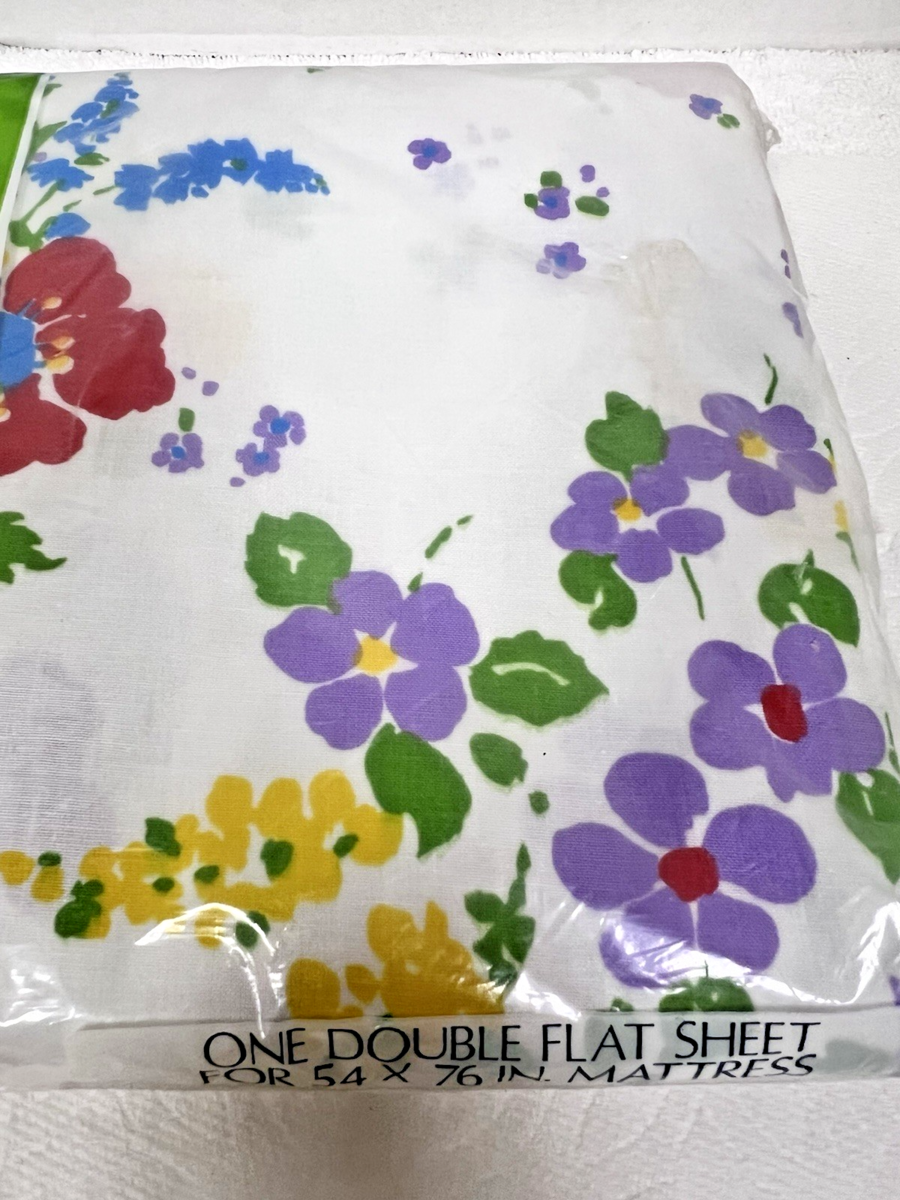 Vintage Dan River Double Flat Sheet Spring Floral Pattern Daffodils Mint in Pack never has been opened