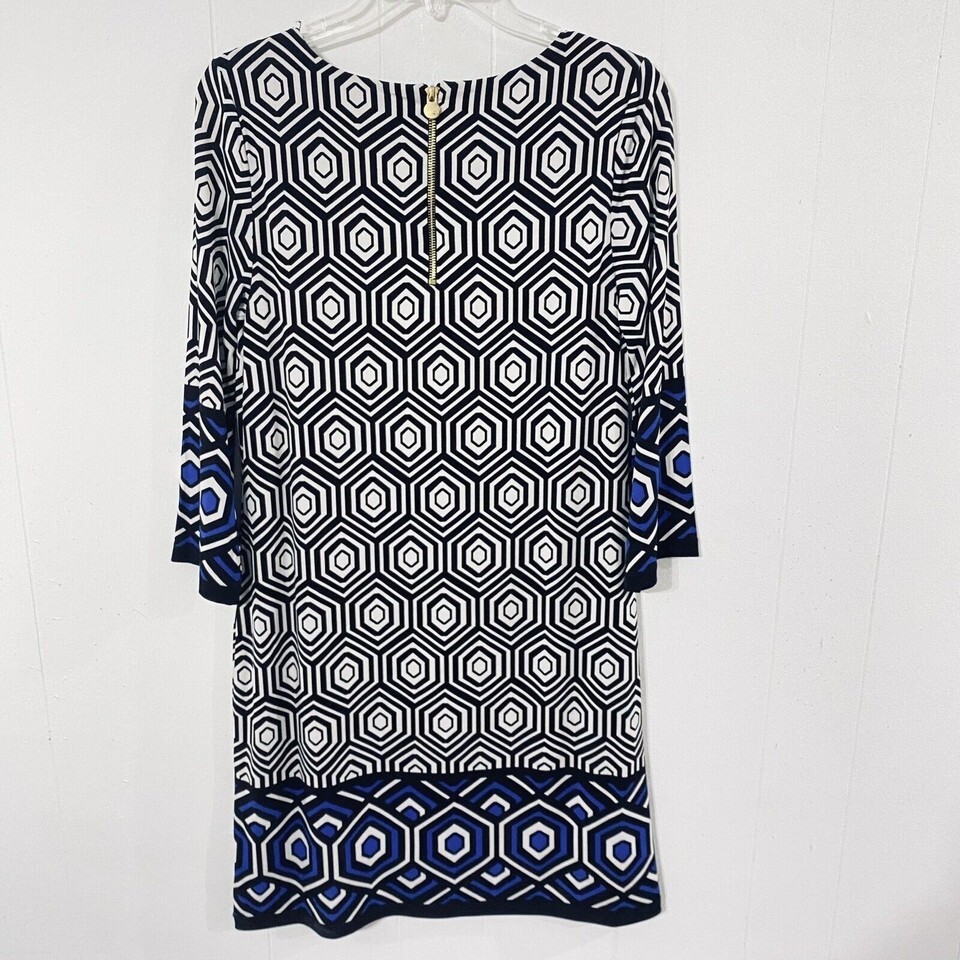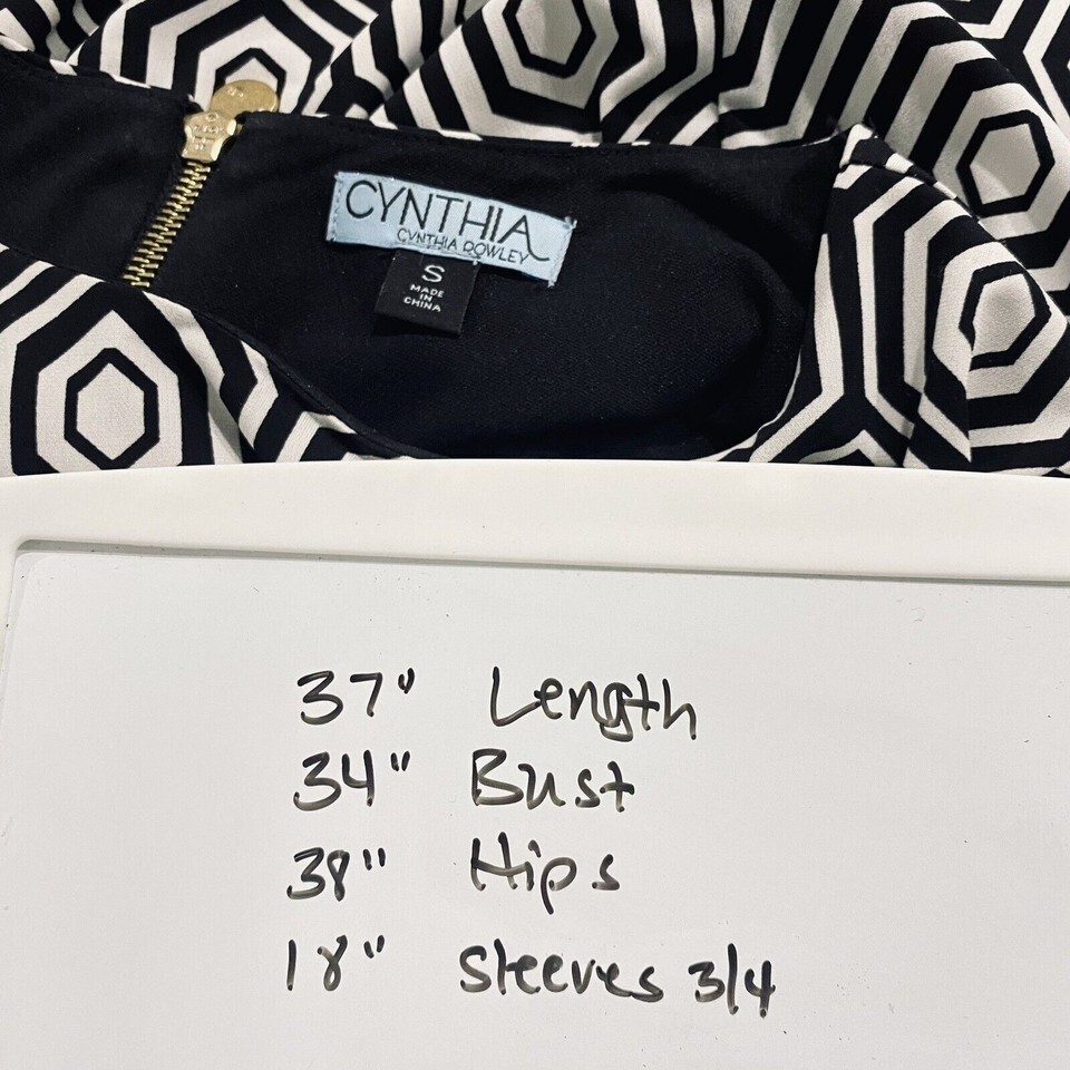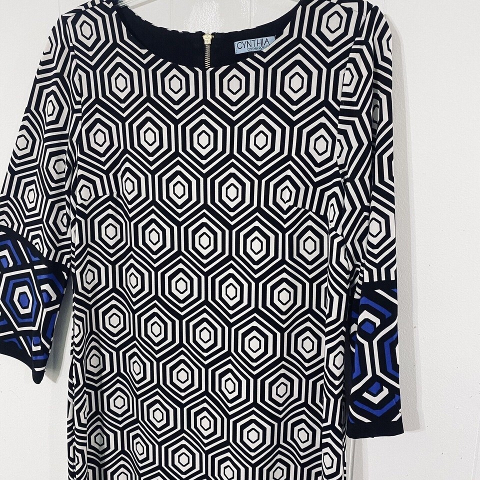 Cynthia Rowley S Black White Blue BOLD Geometric Print STRETCH TRAVEL KNIT Dress