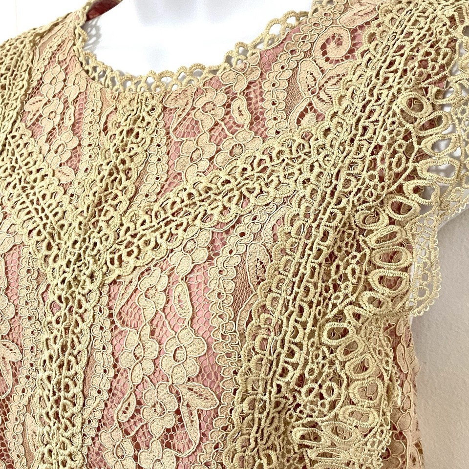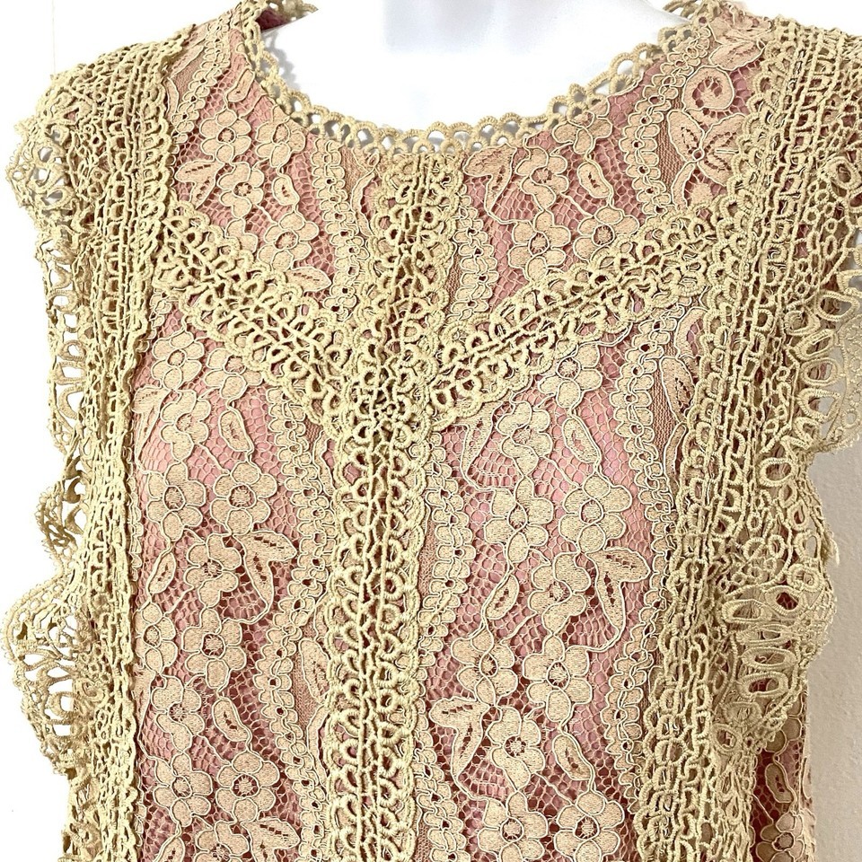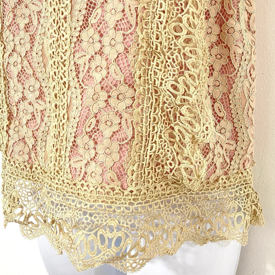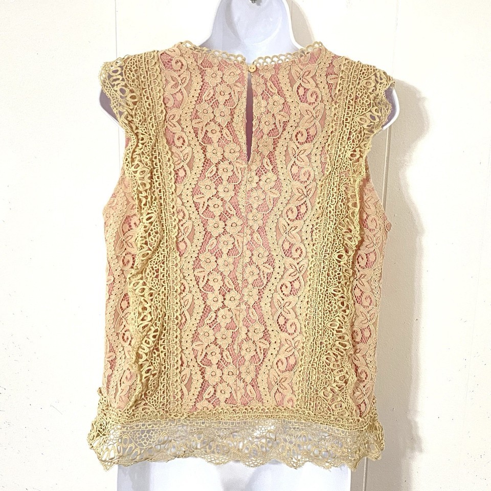 Anthropologie Eri + Ali Lace Top SIZE M Ecru with ROSE LINING Tank GORGEOUS