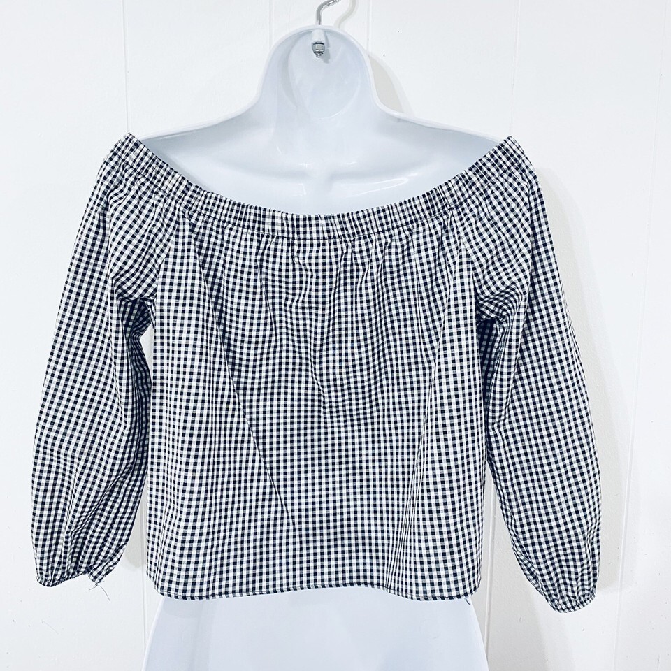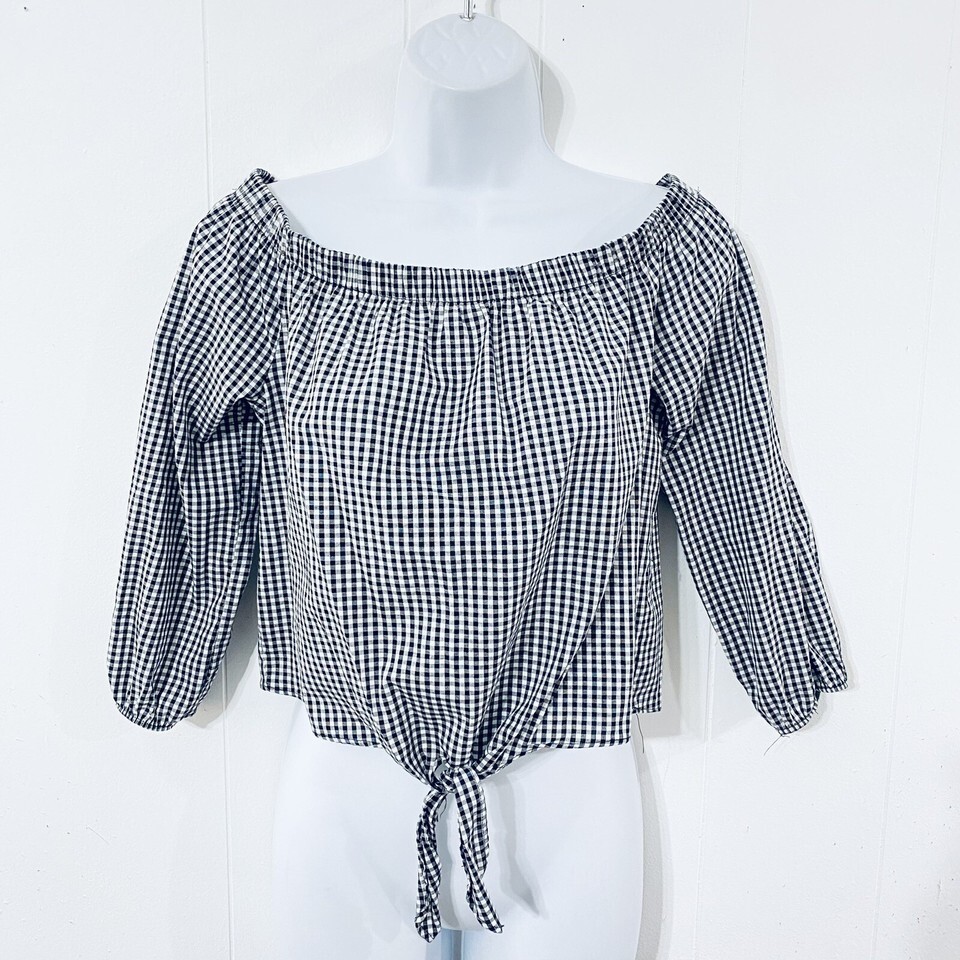 Ivy and Main TIE WAIST Cropped M Black White GINGHAM On Off Shoulder 3/4 Sleeves
