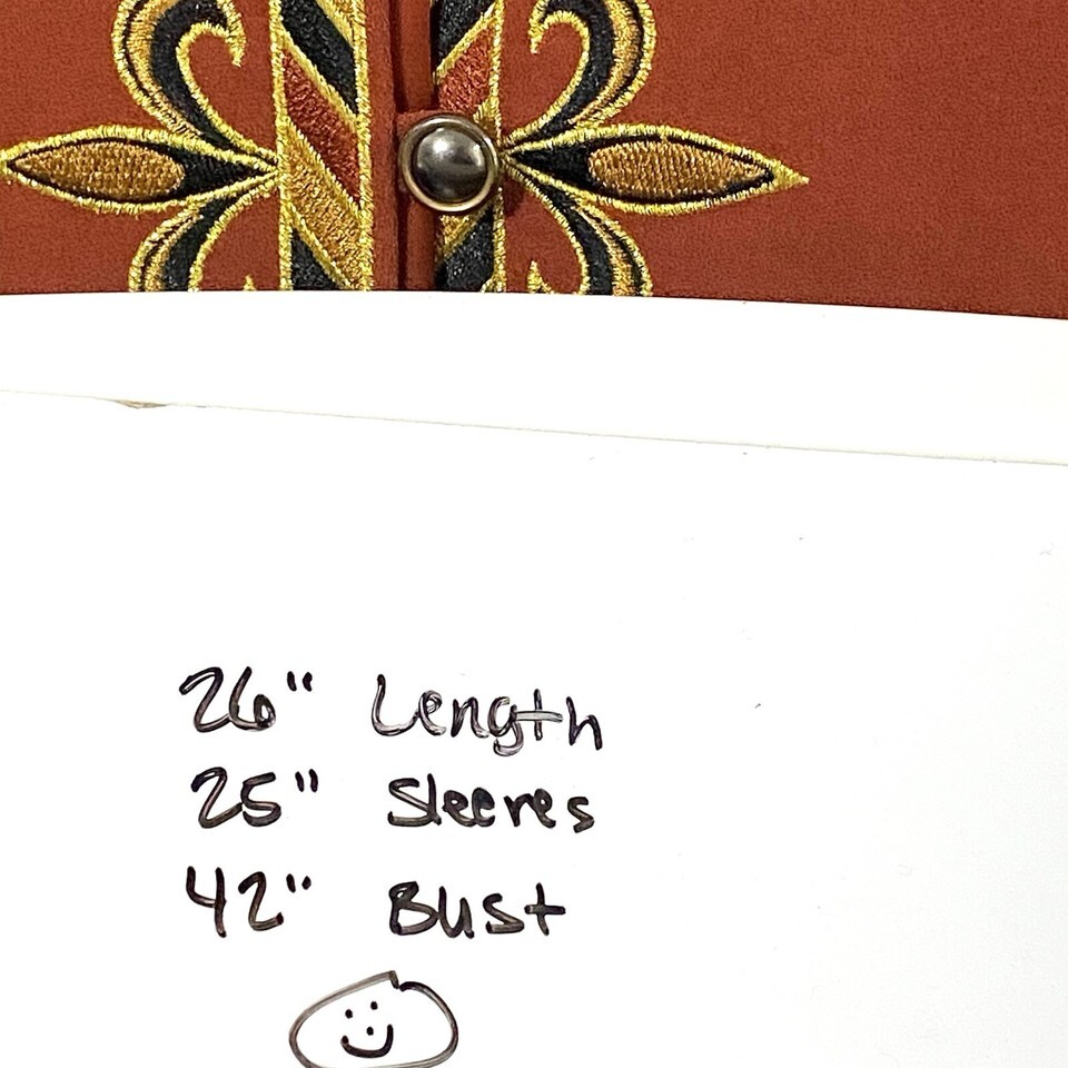 Bob Mackie Jacket Wearable Art M Rust Dark ORANGE Pockets Lined EMBROIDERED