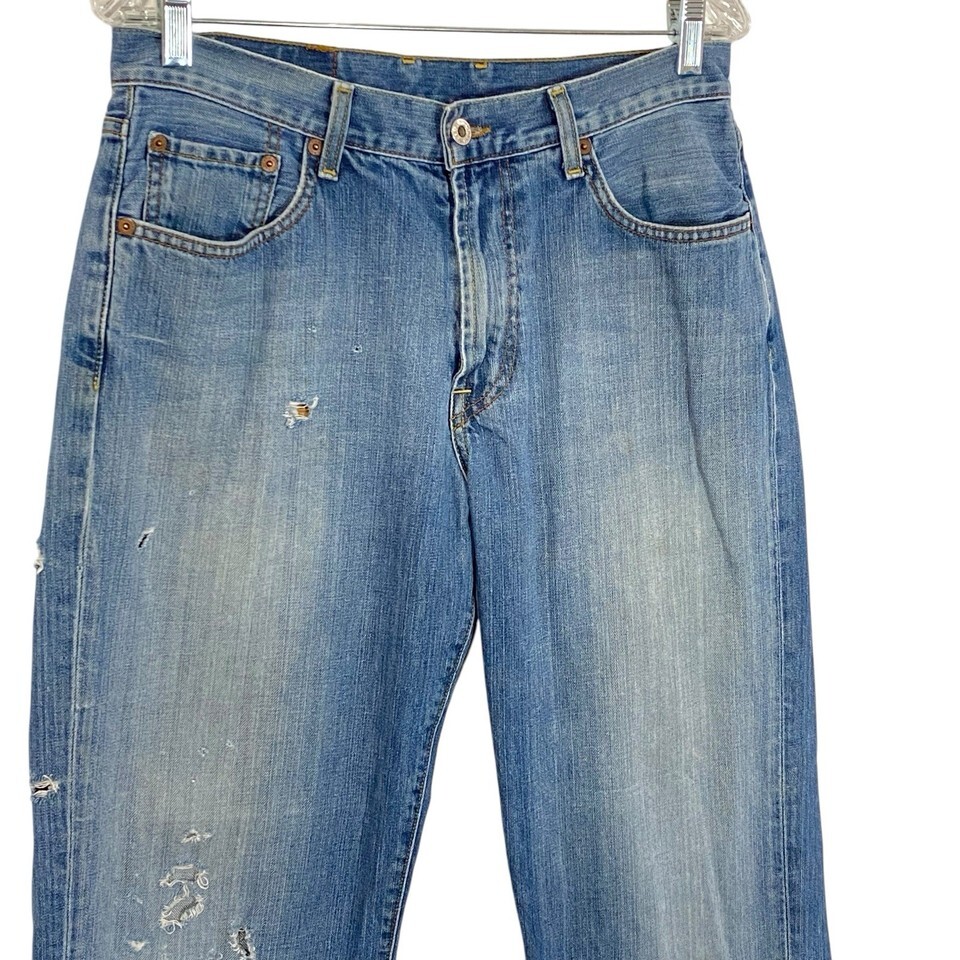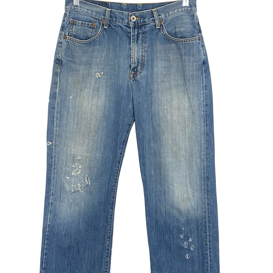 Vintage Lucky Brand Bootleg Dungarees Jeans Mens 32x32 Blue DISTRESSED