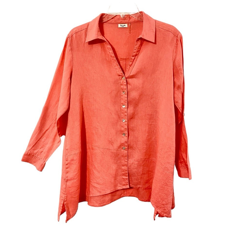 Symple NYC Shirt Womens M Salmon Linen Tunic Beachy Lagenlook Airy Light Travel